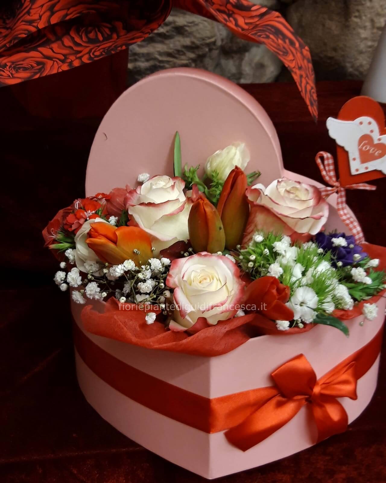 Scatola a forma di cuore con fiori misti